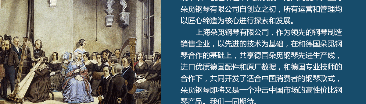 每件乐器的80%部分需要纯手工打造完成。朵觅钢琴之所以在世界范围内受到音乐爱好者的喜爱,正是由于经验丰富的钢琴制作师,正音专家和音准专家辛勤工作的结果,没有他们,也就没有朵觅钢琴品牌的今日和未来。每一台离开我们大门的钢琴,都代表着所有钢琴制造参与者和朵觅钢琴有限公司的声誉。每一个手工匠人认真对待制作钢琴的每一步并确保其质量。 9个月的日日夜夜成就一架大师钢琴,秉承朵觅钢琴有限公司严谨制作钢琴的经验和对音乐的热忱,延续祖辈的优良传统。